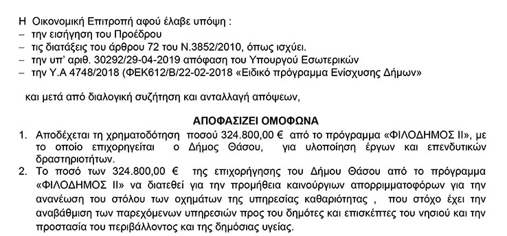 Δήμαρχος Θάσου: Έργο της δικής μας διοίκησης τα νέα απορριμματοφόρα